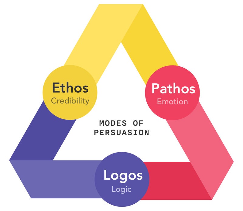 Ethos, pathos and logos are techniques of persuasion that form the rhetorical triangle. A compelling argument, a good sales pitch, a convincing speech, or a strong commercial idea uses elements of all three strategies. Each category makes a different appeal to the audience (Avada, 2021). Ethos is called an appeal to ethic and is used as a means of convincing an audience via the authority or credibility of the persuader. The ethos technique is considered